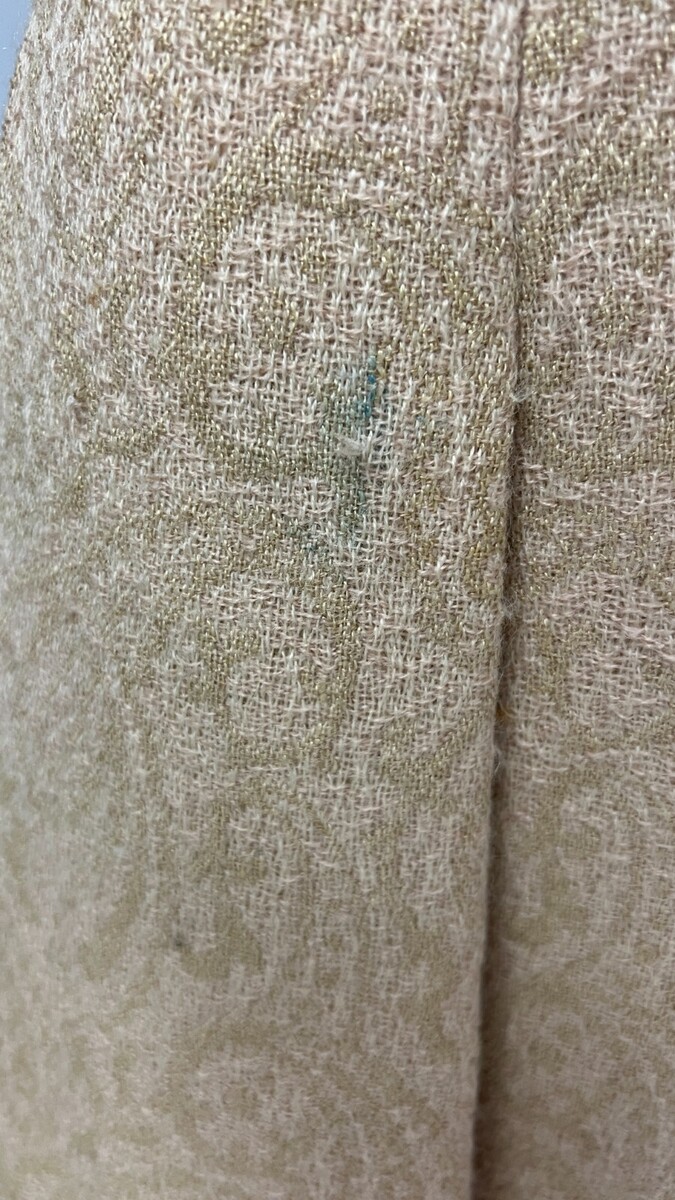 Structurally excellent ? wool is strong and lining intact. Light but noticeable stains present (see photos). Could potentially be cleaned, re-dyed, or creatively restored with appliques. Sold as found.