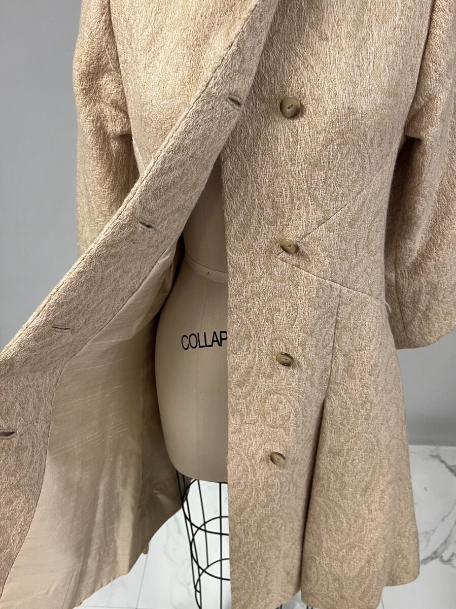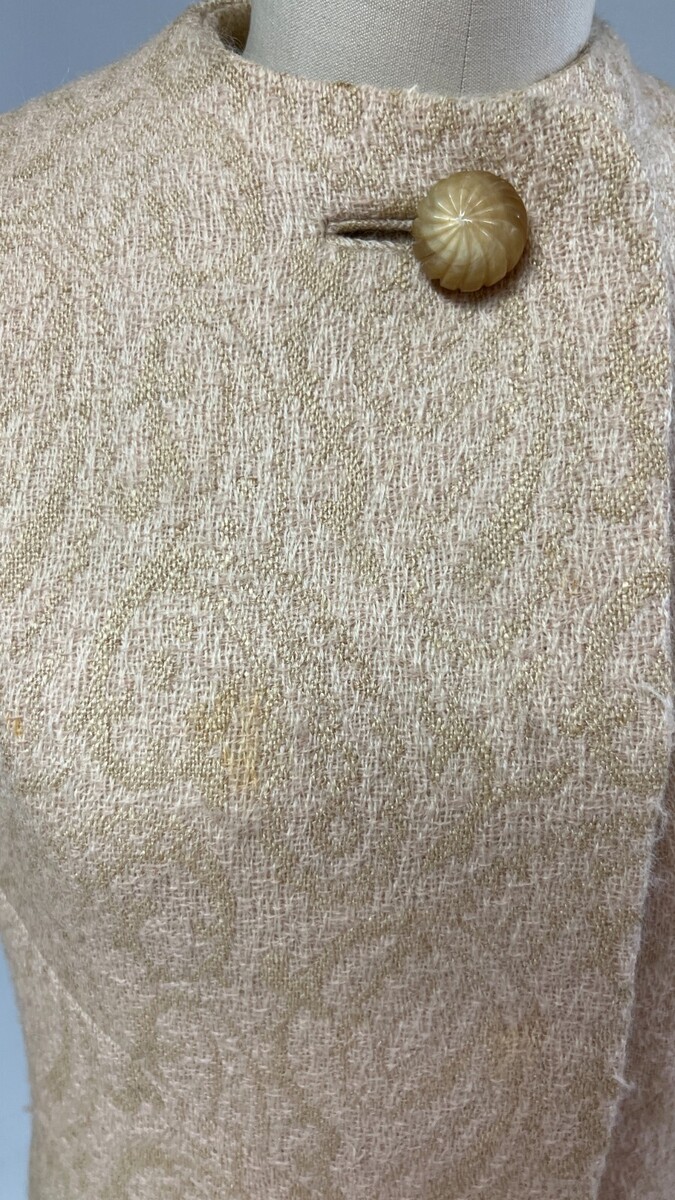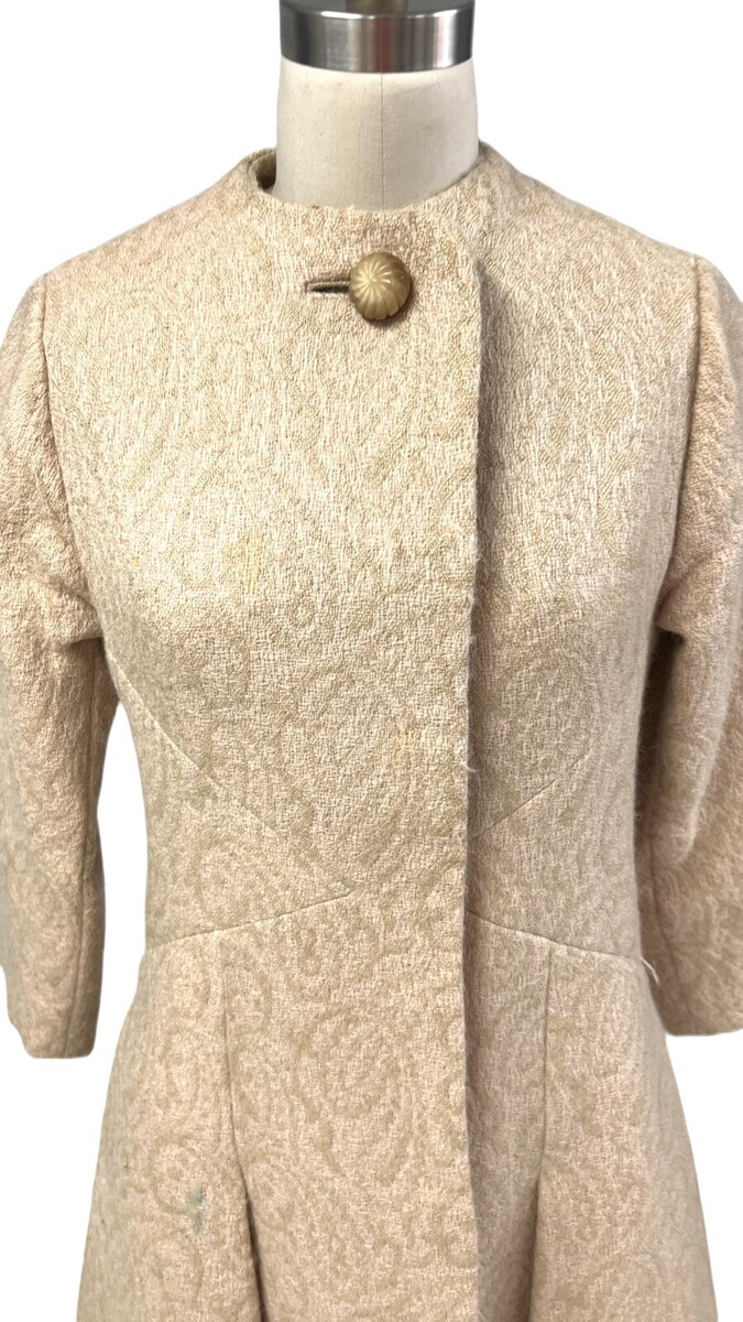 60s VTG Galanos Beige Wool Coat Hidden Placket Mod Minimalist S Flaws Costume