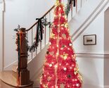 - 6FT Red Pop-Up Christmas Tree with 150 LED Lights, Ornaments, Easy Setup