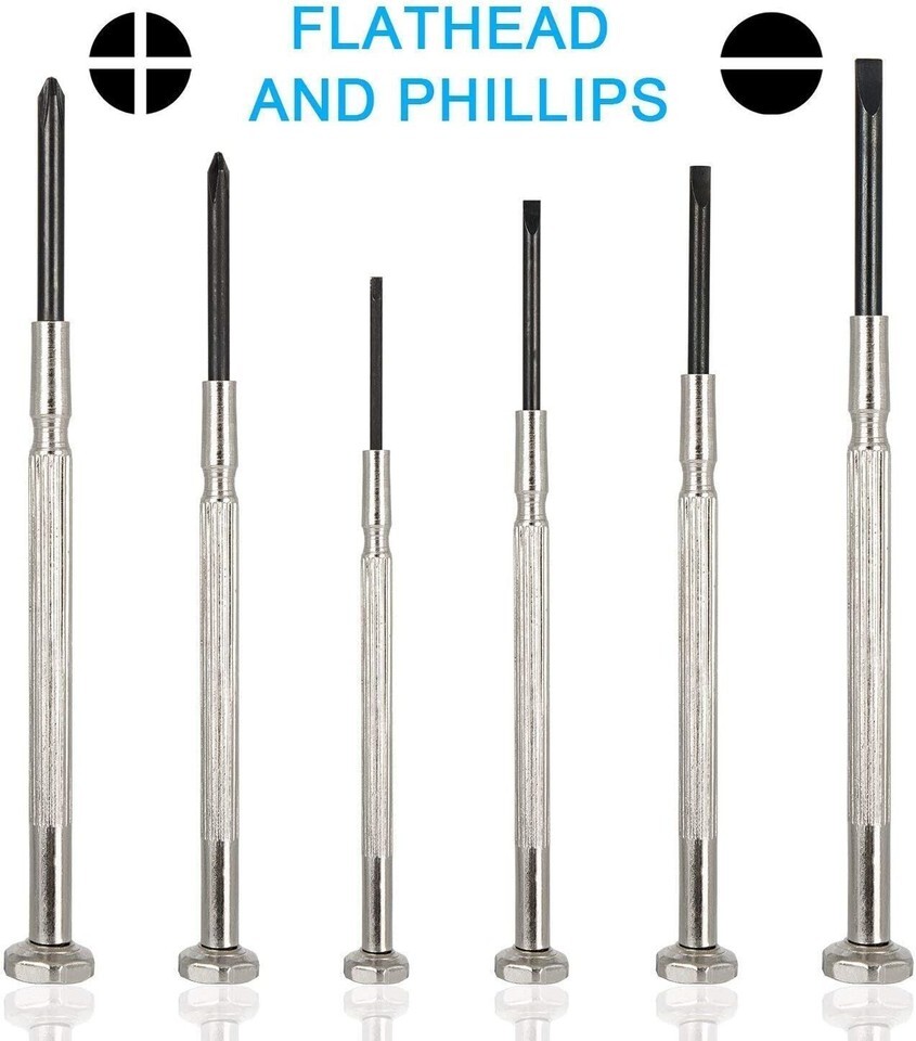 ?6 Different Size?: 2pcs Phillips sizes(#0, #1); 4pcs Flathead sizes(1.4mm, 2.0mm, 2.4mm, 3.0mm); Mini screwdriver set is the prefect choice for your daily repairs such as watch, jewelry, glasses repair and fixing anything with small screws