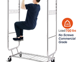 700 Lbs Commercial Grade Heavy Duty Garment Rack with Shelves Collapsible Clothing Racks on Wheels Rolling Clothes Rack for Hanging Clothes Portable Adjustable, Chrome Finish