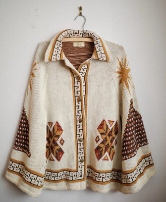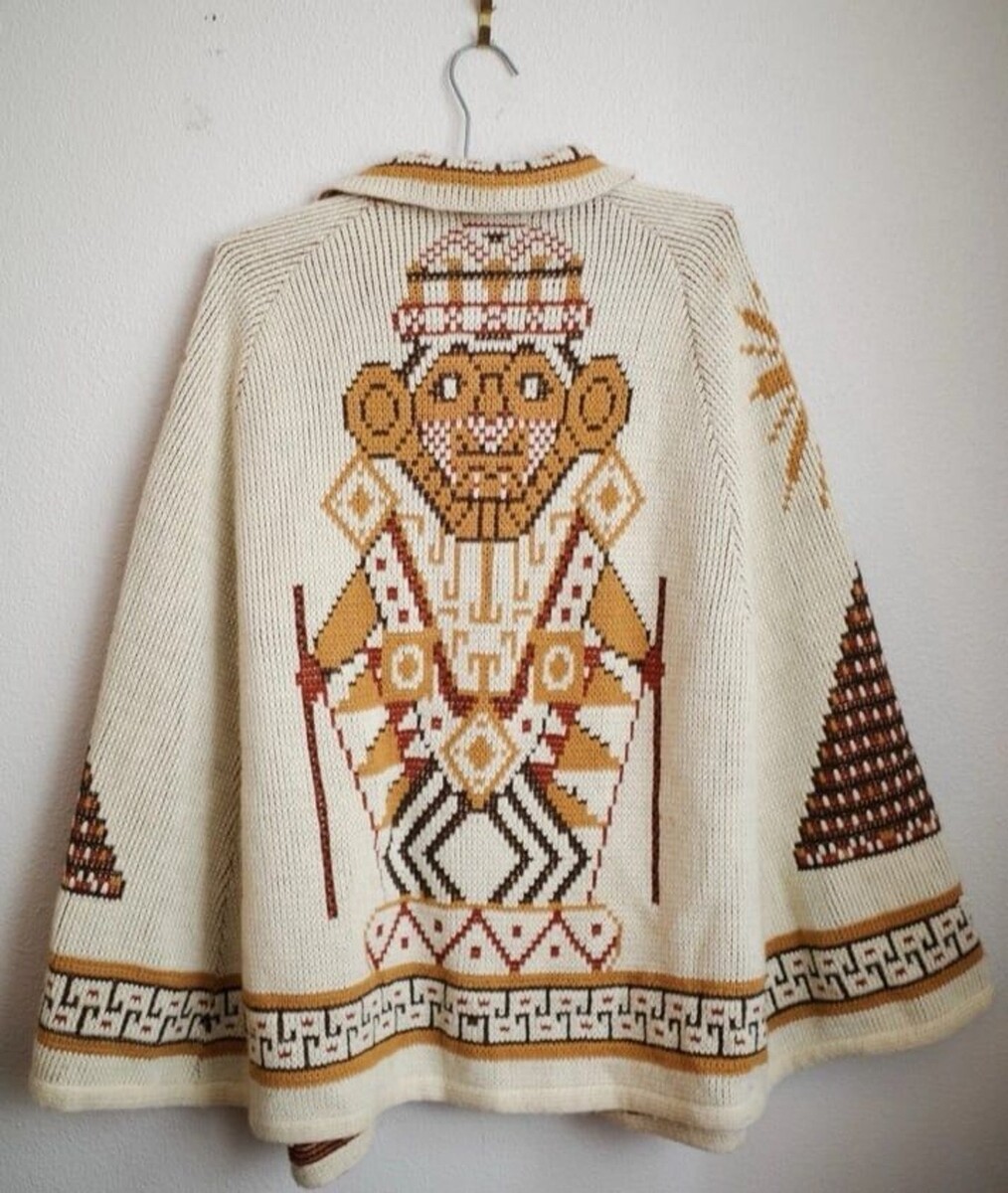 70s Vintage Tribal Aztec Knit Cape Poncho Sweater Southwestern Native American