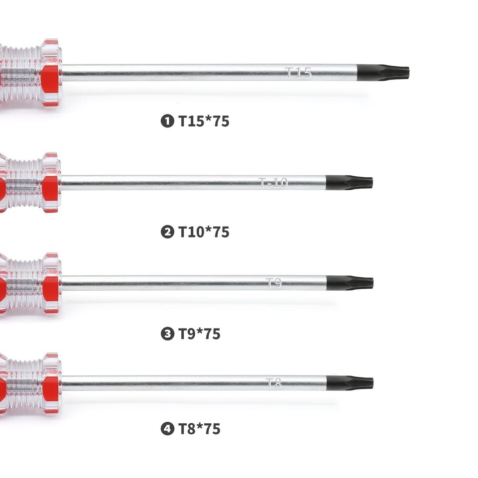 What You Will Get: T8, T9, T10, T15 Torx Head Magnetic Screwdriver?2 of each size) ,torx diameter :3mm/5mm;security hole:1mm/2mm