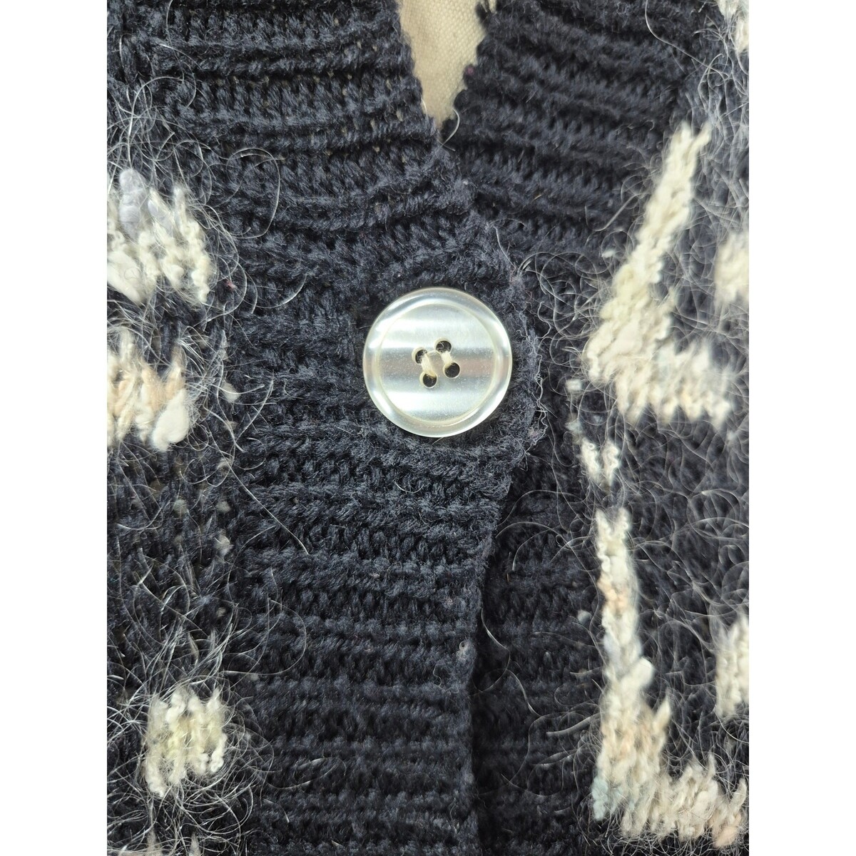 - 80s VTG Kerri Kelsey Mohair Houndstooth Button Cardigan Cozycore Sweater M