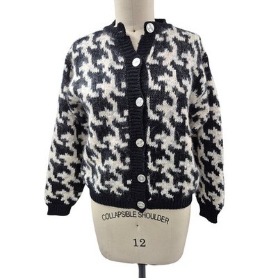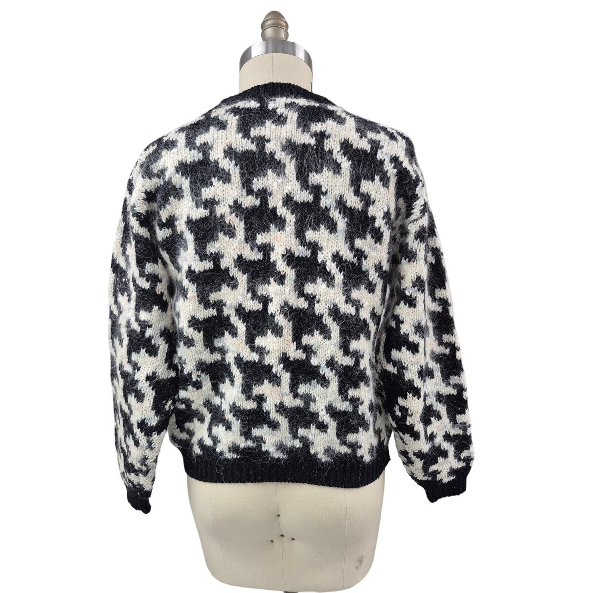 80s VTG Kerri Kelsey Mohair Houndstooth Button Cardigan Cozycore Sweater M