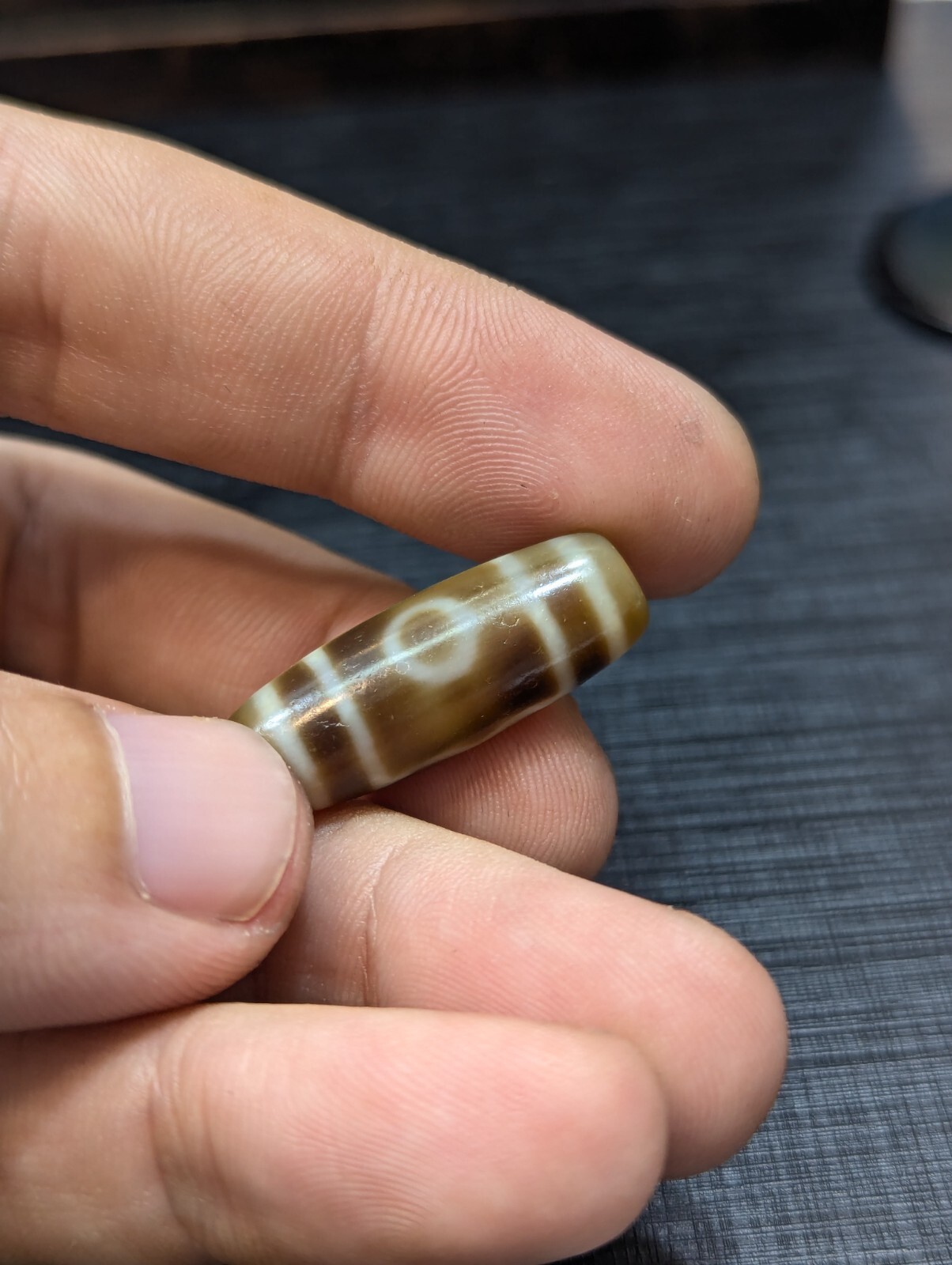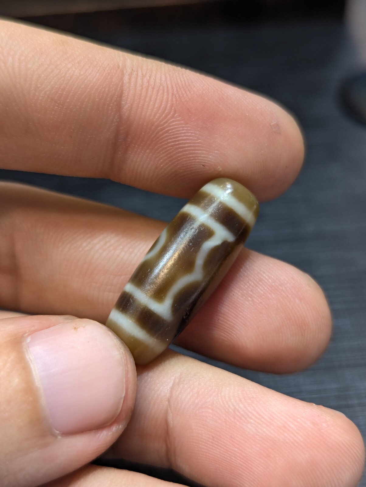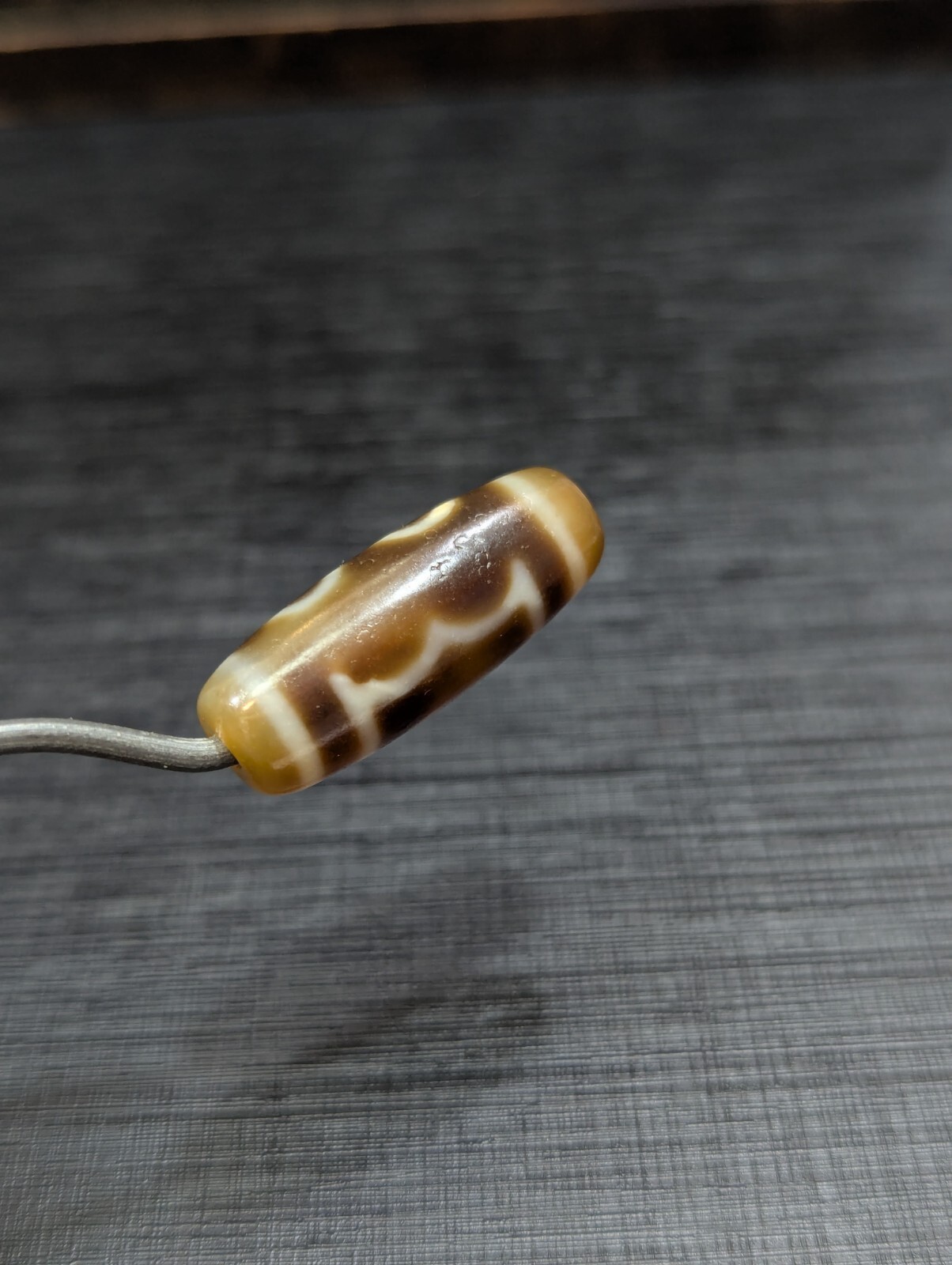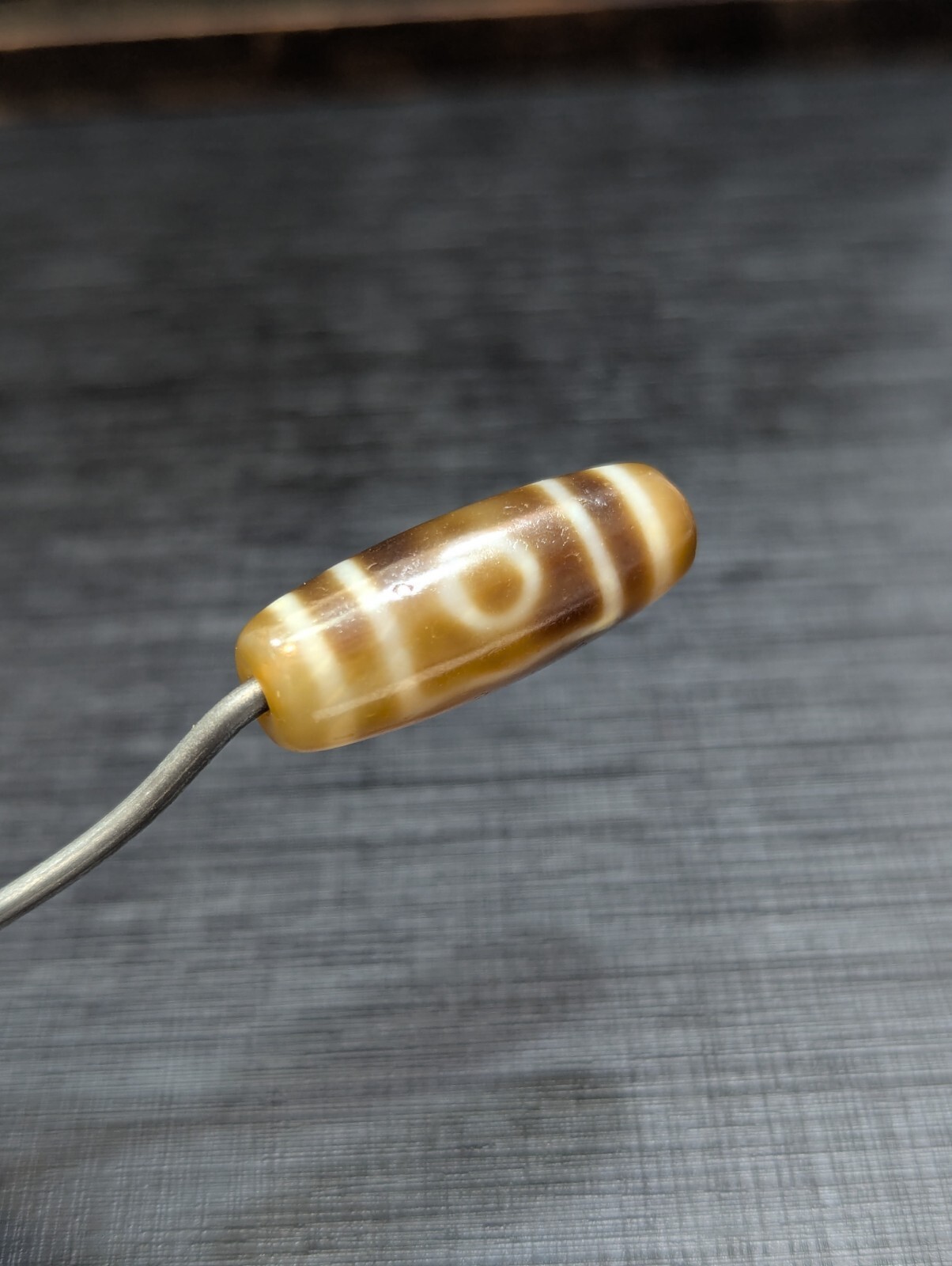 Ancienne amulette de perles Dzi en pierre d'agate indo tibetaine lignes oculaires