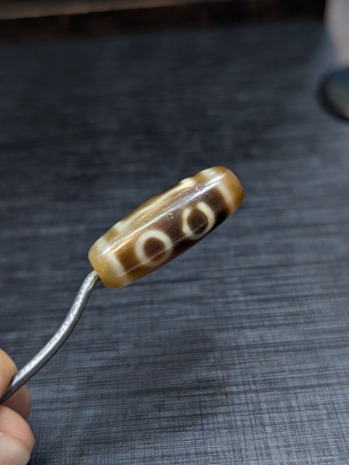 Ancienne amulette tibétaine de haute qualité 3 yeux cercles pierre d'agate...