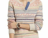 Anthropologie Fiets Voor 2 Orange Mott Sweater S. Anthropologie Fiets Voor 2 Orange Mott Sweater with split neck and modern fair isle pattern and shades of beige, salmon, pink, blue and yellow. Laying flat measures 24 inches shoulder to hem and 18 inches armpit to armpit. Size tag has been removed. However, this is a size small but please double check measurements to ensure the proper fit for you. Cotton, nylon, viscose, and camel blend.
