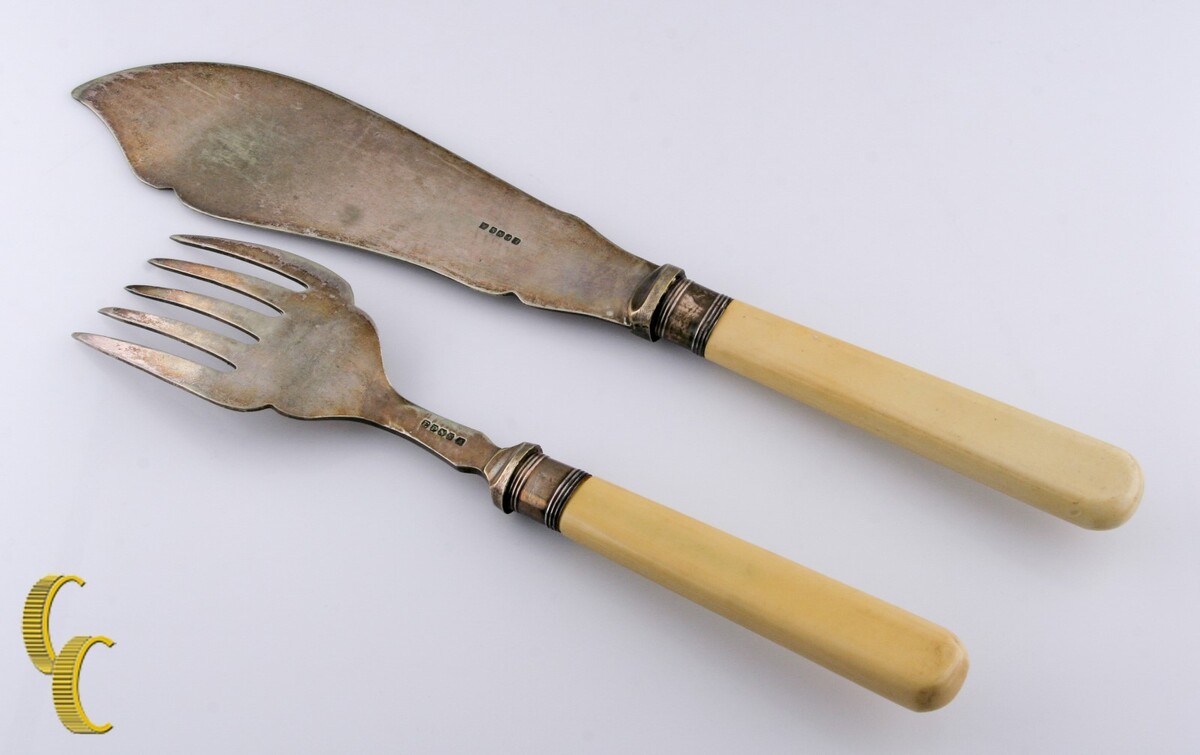 Antico set di pesci inglesi EPNSA con manici di celluloidi