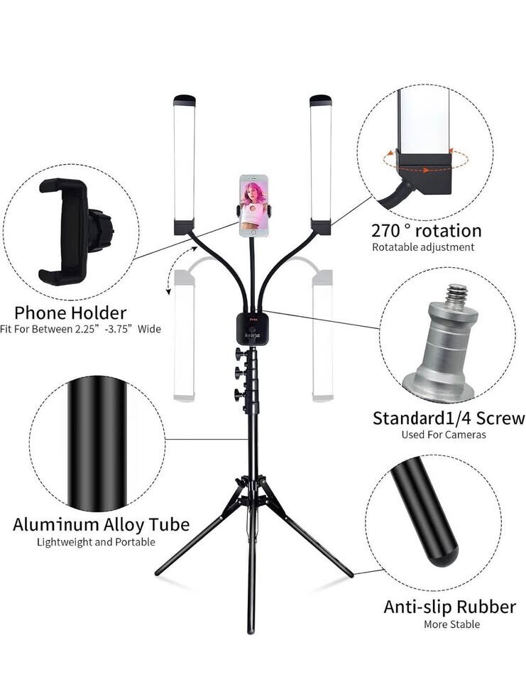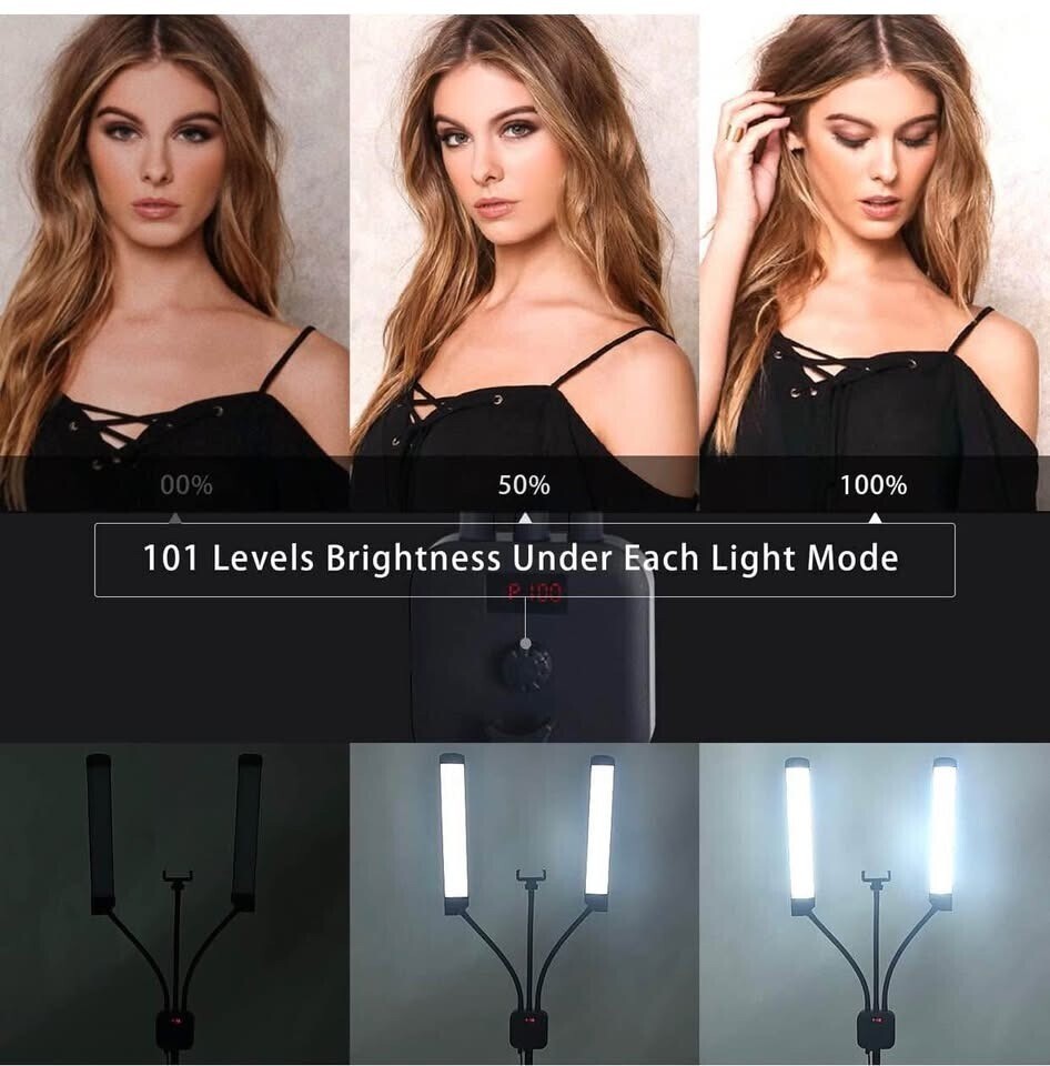 Open box and unused. In carrying case. All accessories in photos included. LED Lash Light Kit, Energy Saving, 5400 Lumens Bright, 3 Color Modes with Adjustable Tripod Phone Holder, Suitable for Make Up Artist, Photography, Video Recording, Live Streaming