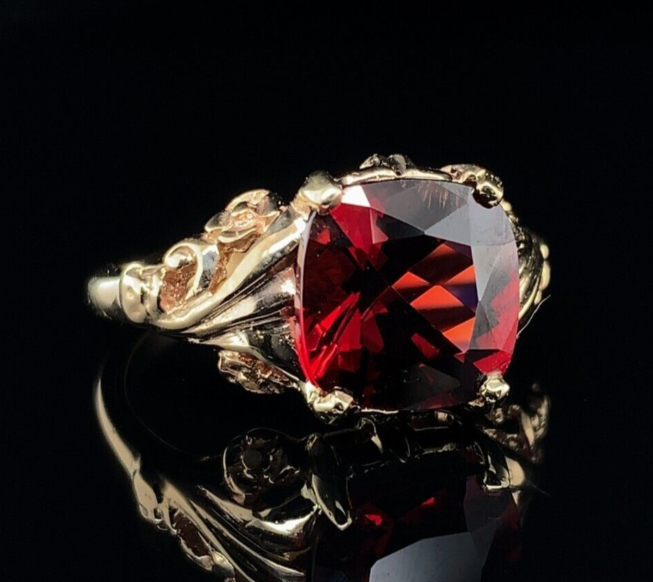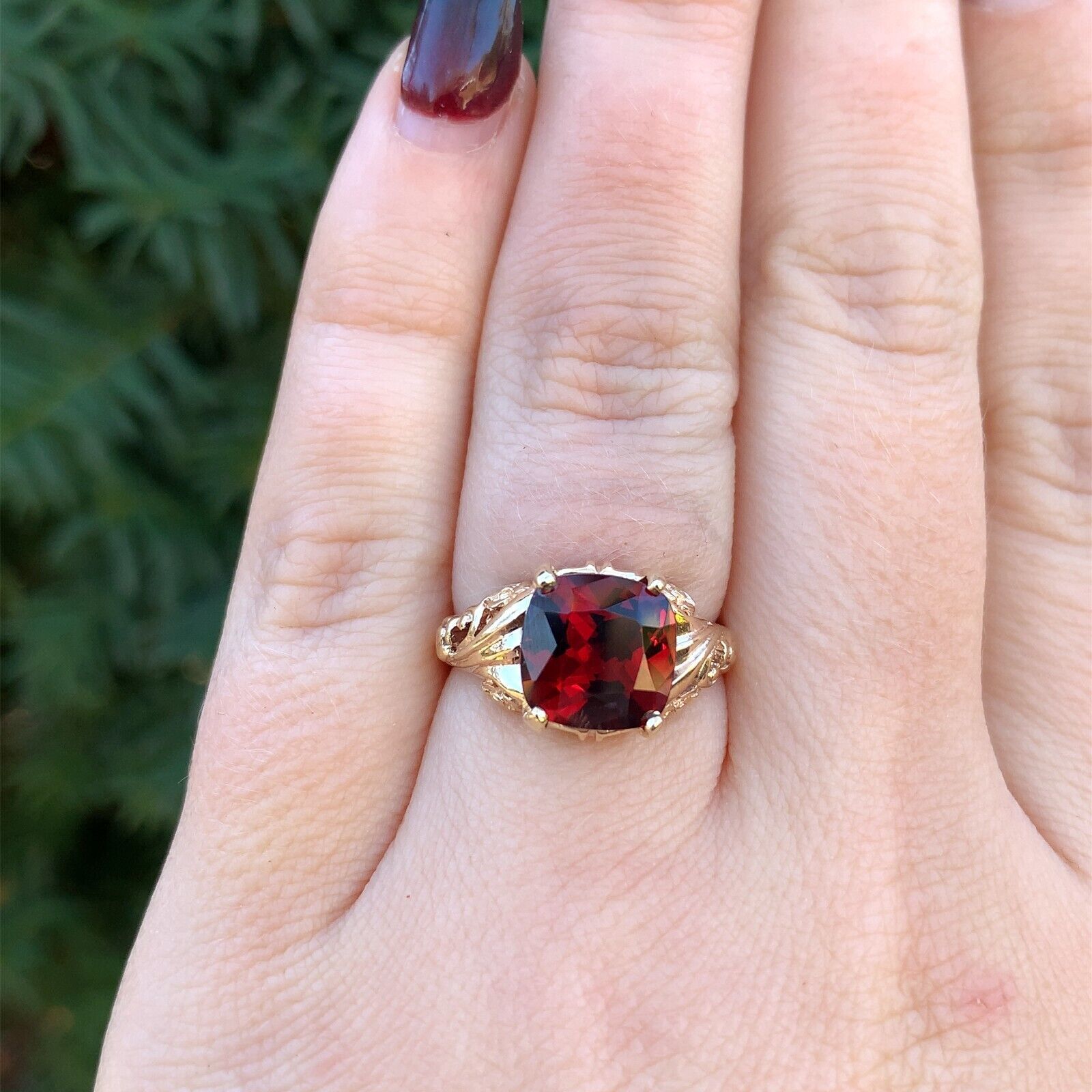 Authenticity Guarantee 10k Yellow Gold 1.68ct Deep Red Genuine Natural Garne...