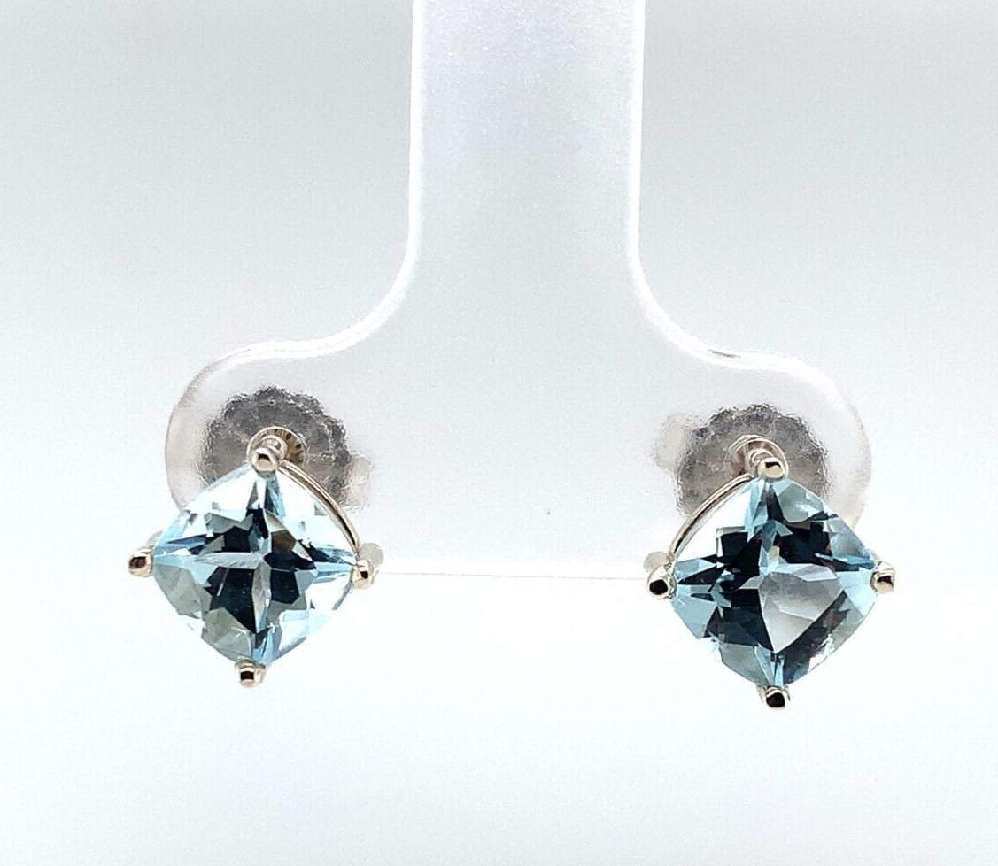 14k Gold 1.82cttw Genuine Natural Aquamarine Cushion Cut Stud Earrings (#J6375)