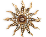 Authenticity Guarantee 14k Rose Gold Starburst Diamond and Seed Pearl Pin Pe...