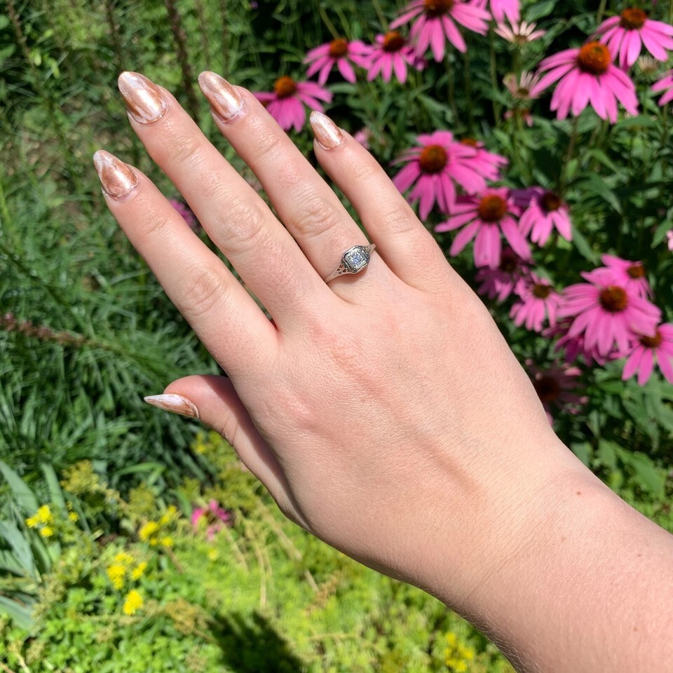 18k Gold Art Deco .15ct Genuine Natural Diamond Filigree Ring Size 7.75 (#J6901)