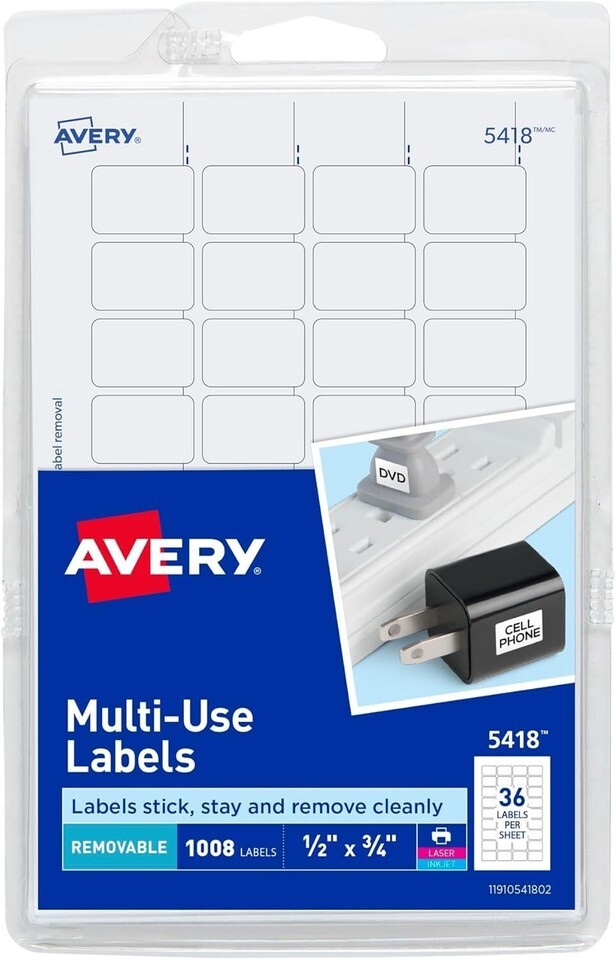 Primary image for Avery Removable Print or Write Labels, White, 0.5 x 0.75 Inches, Pack of 1008