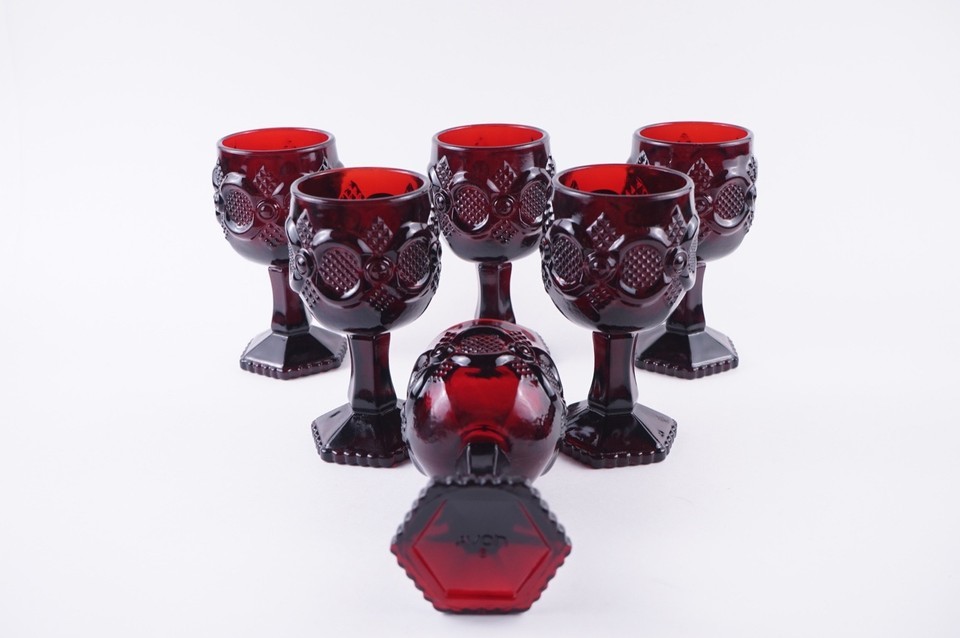 AVON RUBY RED CAP COD SET of 6 WINE or LIQUEUR GLASSES