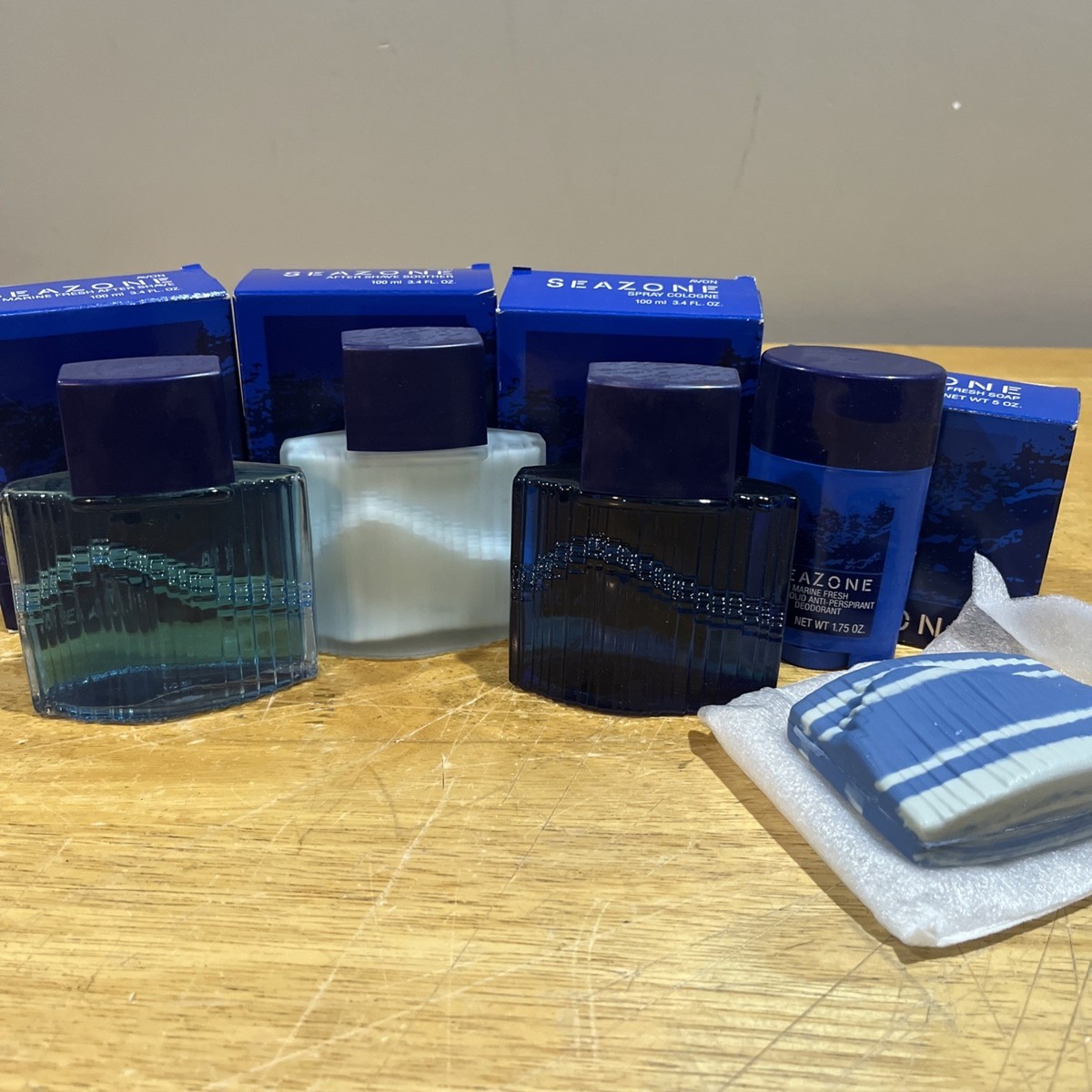- Avon Seazone Spray Cologne 3.4oz After Shave Soother Soap Deodorant After Shave