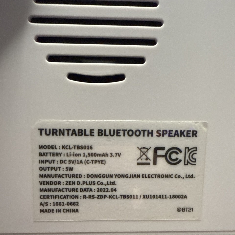 - BT21 TaTa Character Turntable Bluetooth Speaker Official K-Pop Authentic BTS