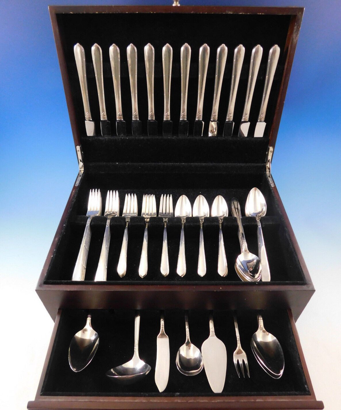 Grille Size Berkley Square by Community Oneida c1935 Silverplate Flatware set - 68 Pieces. Grille size knives and forks have elongated handles. This set includes:
