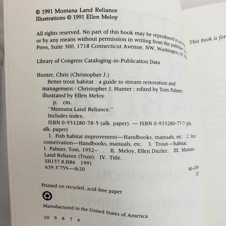 Better Trout Habitat by Montana Land Reliance Island Press Publishing Imprint: Island Press Publication date: 1990-12-01 Pages: 352 Product dimensions: 152mm (w) x 230mm (h) x 21mm (d) Better Trout Habitat explains the physical, chemical, and biological needs of trout, and shows how climate, geology, vegetation, and flowing water all help to create trout habitat. English Paperback Isbn-13: 9780933280779