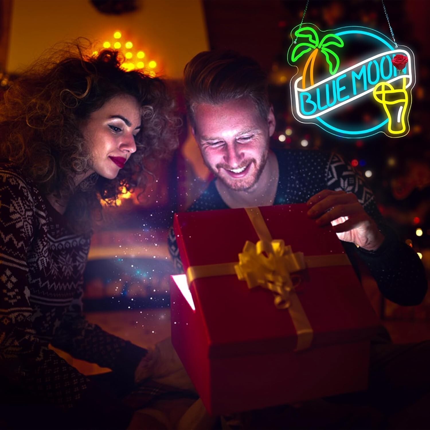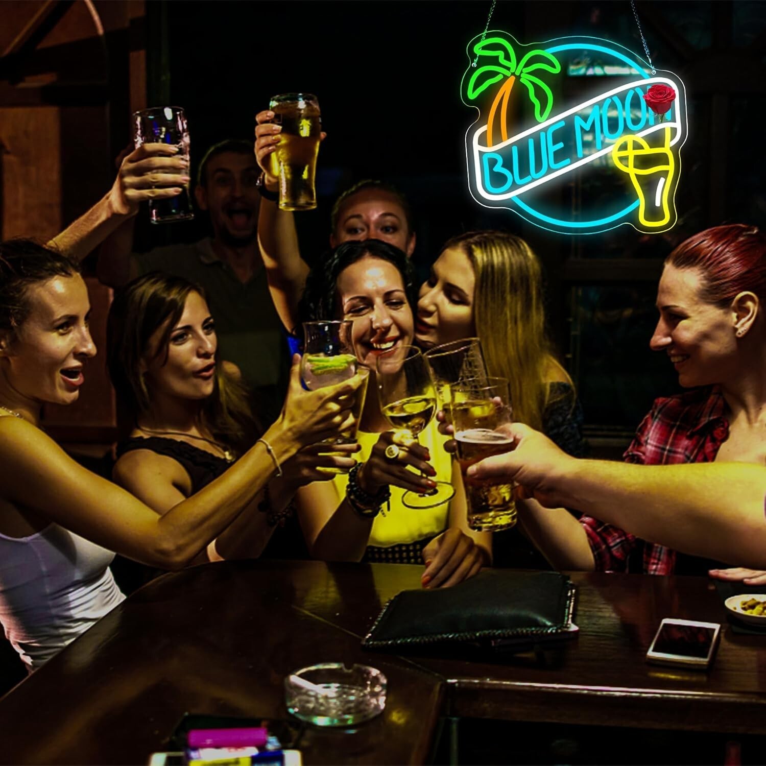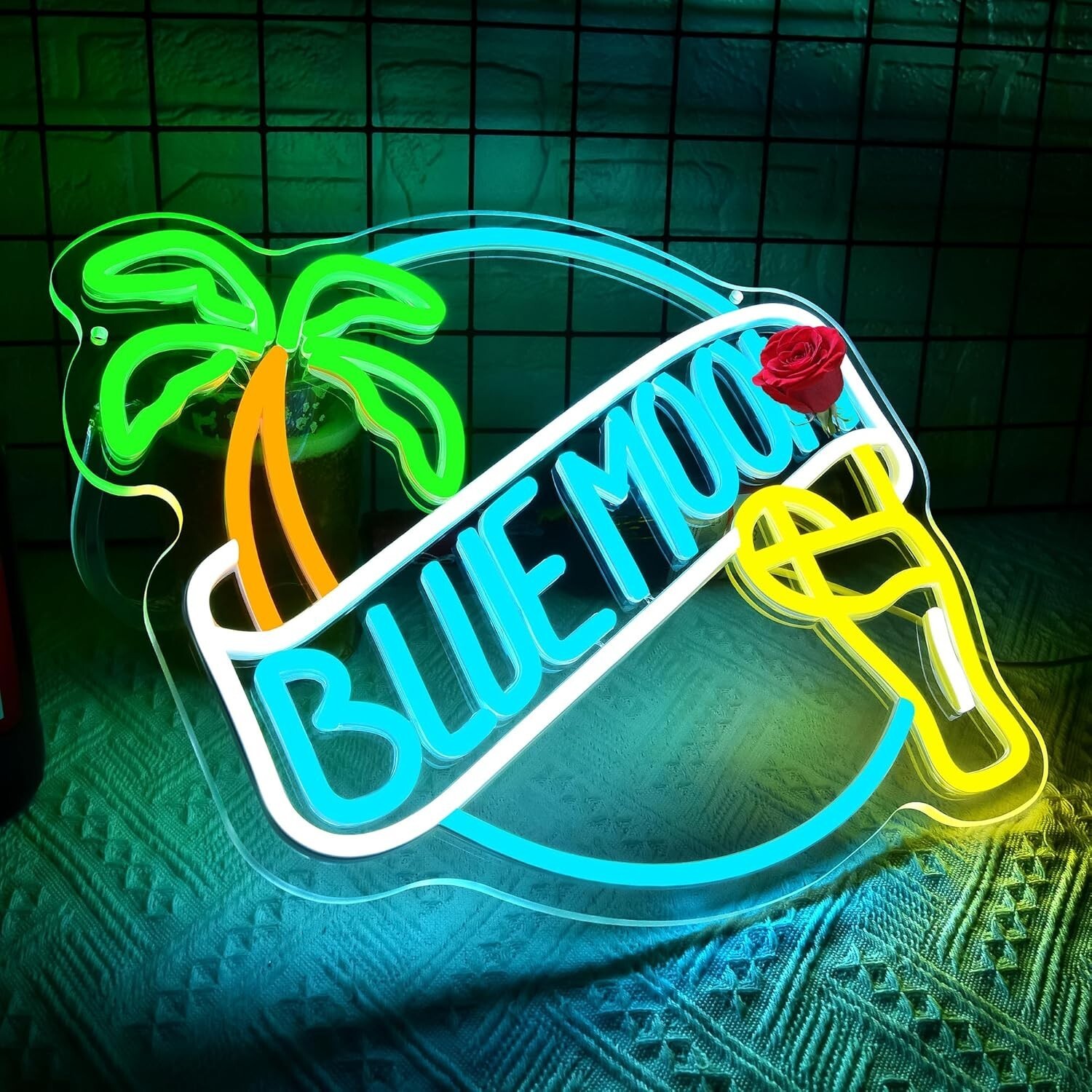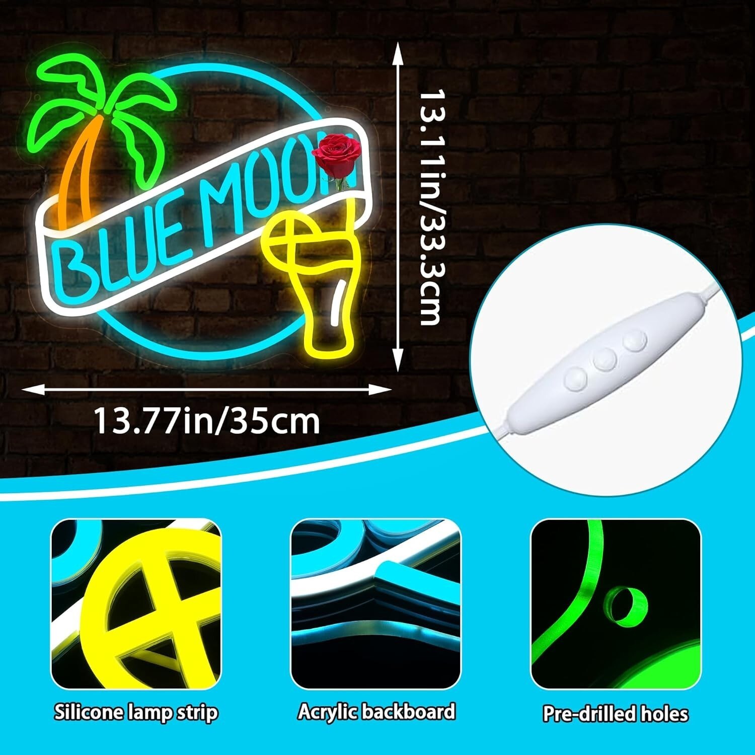 - Blue Moon Beer Neon Signs Dimmable Bar Neon Beer Light Sign for Wall Decor Blue
