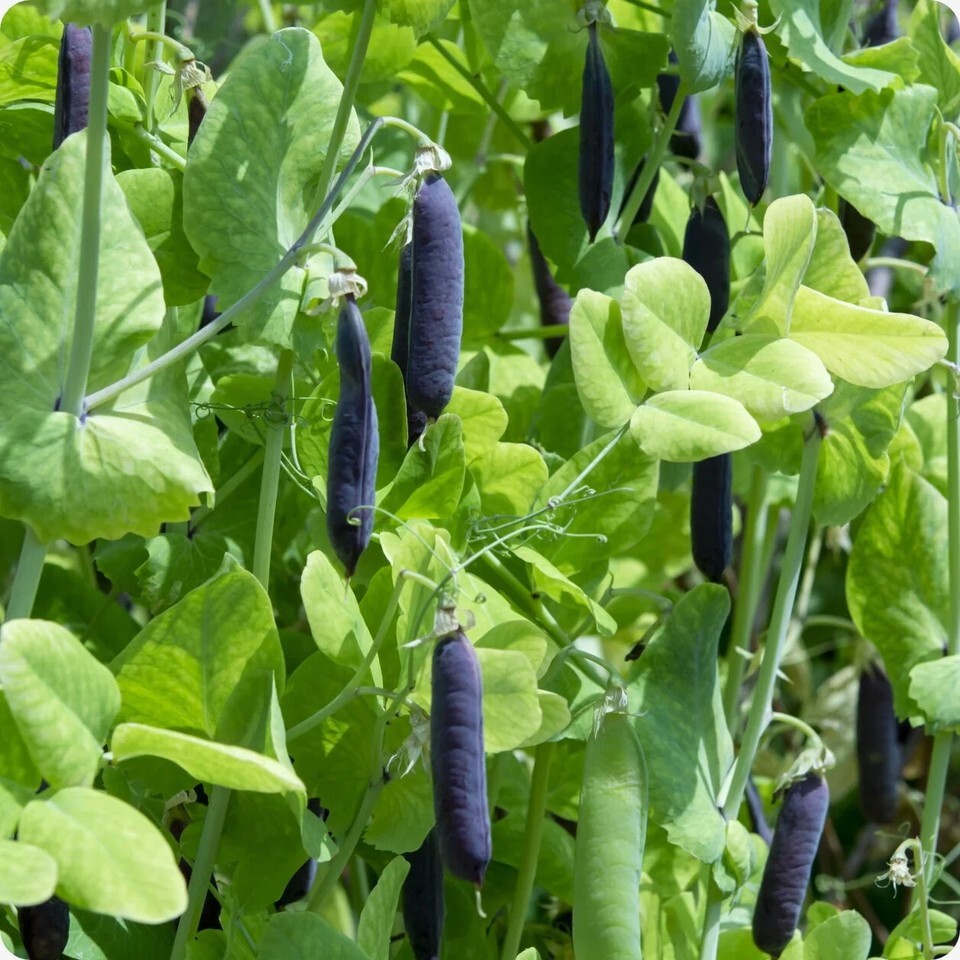 Blue Shelling Pea (Pisum sativum) is an heirloom variety originating from the Netherlands, traditionally known as Blauwschokkers. It is best known for its striking purple-blue pods, which grow on tall, vining plants that often reach 6?8 feet with support. This dual-purpose pea can be harvested young for fresh shelling or left to mature and dry for use as a soup pea. Valued for its ornamental appeal as well as its productivity and flavor, the Blue Shelling Pea remains a favorite in heritage gardens across Europe and North America