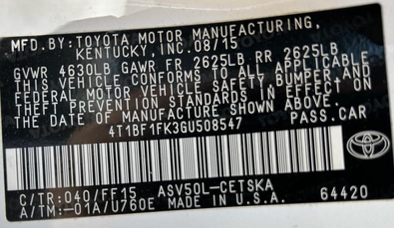 CAMRY 2016 Owners Manual 104550018Owner's Manual as Pictured