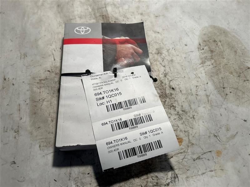 CAMRY 2016 Owners Manual 104550018 This part requires VIN (Vehicle Identification Number) verification prior to shipping. Please send VIN prior to purchase, or include in your purchase notes. If not, VIN will be requested after purchase, prior to shipping the order. Without VIN verification, orders are subject to seller cancellation. If you have any questions about this part, or any other parts from this vehicle, please click HERE to send us a message. We answer all questions promptly during regular business hours. Monday through Friday 7am-5pm Central Time. Donor Vehicle Information Model: CAMRY Year: 2016 Mileage: 74000 Stock Number: 1QC015 Specific Part Notes: 000,4DR Explanation of damage codes in part notes: - Part Fitment Information This part will fit these makes and models with these options If you do not see your vehicle in this list, please click HERE to send us a message so before buying so we can verify if it will fit your vehicle. - Our Promise Our Promise is that you are completely satisfied with every part you buy from Counselman Auto Recycling If you have a problem with the part, changed your mind or the part does not fit, simply let us know. If you need help with how to return an item, send us a message. We are here to help. - Shipping Information This part willl ship with Fedex or USPS with live tracking information. The tracking number will be posted to and you can find it in your item purchase history.