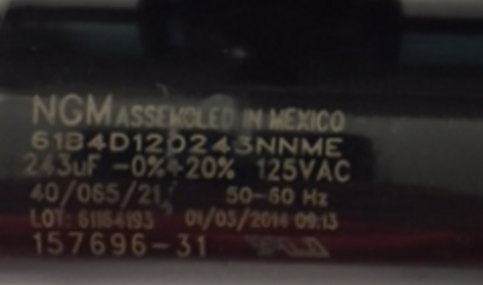 - CENTURY 157696-31, 61B4D120243NNME, Start Capacitor, 243-292 MFD, 125 VAC