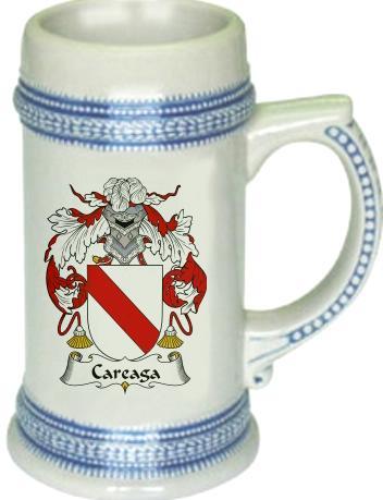 Careaga Family Crest Stein / Coat of Arms Beer Tankard. We believe our Coat of Arms Steins are of the highest quality anywhere. The glassware quality is very thick and sturdy. The stein feels great in your hand with a very thick handle. Fill this glass with your favorite beer or beverage. keywords: steins, beer, german, glass, glassware, cup, tankard, goblet, family shields, shield, family, genealogy, heraldry, code of arms