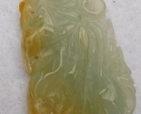 - Carved Drilled Pendant Amulet ? Jade Jadeite Stone? Green w/ Yellow Gold Color