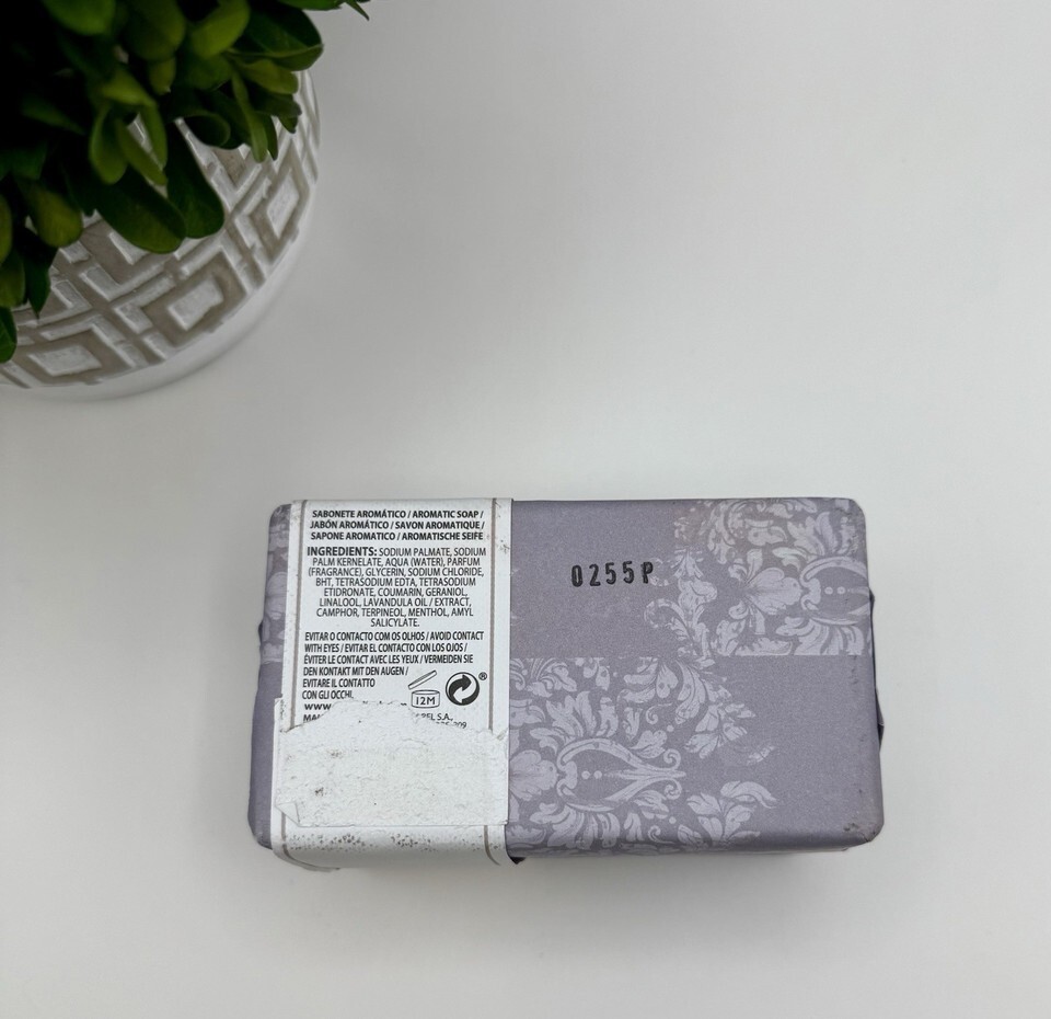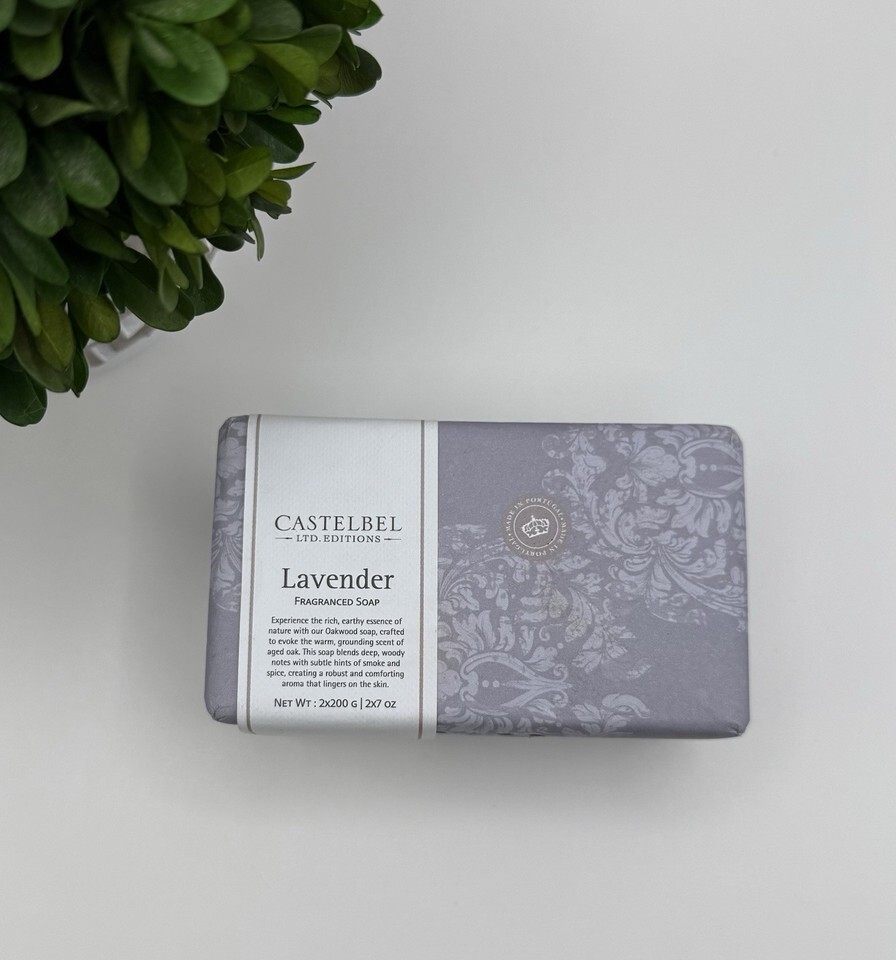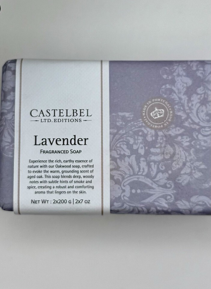 Indulge in the timeless luxury of Castelbel Ltd. Editions Lavender Fragranced Soap, handcrafted in Portugal ? a country renowned for its artisanal soapmaking traditions. This elegant set of two 7 oz (200 g each) bars is beautifully wrapped in lavender-hued paper with intricate damask detailing. Each bar is enriched with the rich, earthy essence of natural oakwood and lavender, blending deep, woody notes with subtle hints of smoke and spice. The result is a robust yet comforting aroma that lingers softly on the skin. Castelbel soaps are made with premium vegetable oils and traditionally milled for lasting quality, ensuring a rich, creamy lather and long-lasting fragrance. Perfect for gifting, display, or pampering self-care rituals. Details: ? Brand: Castelbel Ltd. Editions ? Scent: Lavender with Oakwood notes ? Quantity: 2 bars (7 oz / 200 g each) ? Total weight: 14 oz (400 g) ? Made in Portugal ? Beautifully packaged ? ideal for gifting Condition: Brand new and sealed in original wrapping. Stored in a clean, smoke-free environment. ? A luxurious touch of Portugal for your bath, vanity, or gift basket.