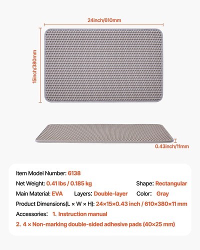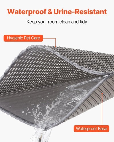This double-layer cat litter mat features a honeycomb structure that captures and collects litter, keeping your space clean and tidy. The bottom layer is waterproof and non-slip, preventing urine and other liquids from seeping into the floor, protecting hardwood floors and carpets.