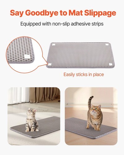 Waterproof Non-Slip: The bottom layer of the cat litter trapping mat is waterproof and urine-proof, preventing liquids leaking and effectively protecting your floors. The non-slip backing and included anti-slip adhesive strips ensures the mat stays firmly in place during use.