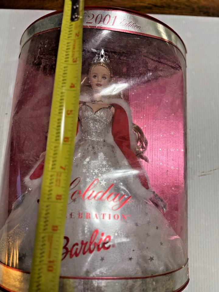 The Celebration Barbie special 2001 edition by Mattel features a blonde Barbie doll with straight hair and blue eyes. This vintage Barbie, part of the Holiday Celebration Barbie product line, stands at 11 inches tall and comes in the original packaging. With a light complexion and dressed in fashion and beauty-themed attire, this collector's item doll is perfect for teens, adults, and youth aged individuals who appreciate the Barbie franchise and the iconic fashion doll.