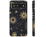 This slim, dual-layer phone case combines cosmic charm with everyday protection. A deep midnight background hosts radiant gold stars, moons, and sunbursts rendered in crisp 3D-wrap printing ? it looks like a private night sky in your hand. The glossy or matte finish keeps the artwork vivid while the TPU silicone liner cushions against drops. Clear port openings and wireless-charging compatibility make it fully functional for daily use. Thoughtfully certified and weather-resistant, it?s built to travel with you from late-night walks to morning commutes without losing its luster. Product features - Full 3D-wrap print for edge-to-edge, high-density artwork - Dual-layer construction: polycarbonate shell + TPU silicone liner for shock absorption - UV-protected print resists outdoor weathering and color fade - Supports wireless charging; clear, open ports for easy connectivity - Available in glossy or matte finishes; RoHS, REACH, Intertek certified EU representative: HONSON VENTURES LIMITED,