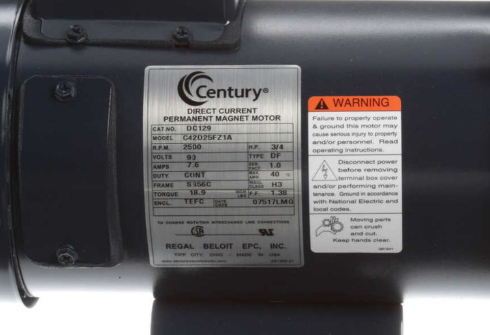 - Century DC129, C42D25FZ1A, Permanent Magnet Totally Enclosed C-Face Motor, 3/4 H
