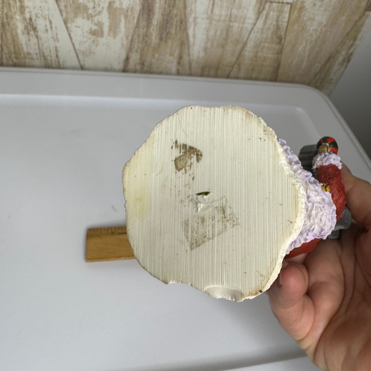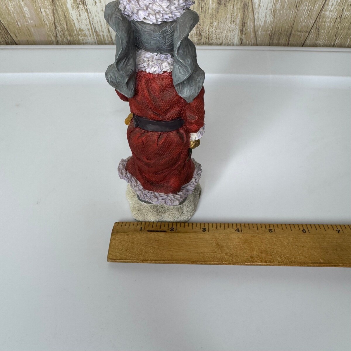 Measurements: ? Height: 10 in and 2.5" across Type: Figurine Occasion: Christmas Material: Resin Character: Elephant Room: Any Room Theme: Santa Claus, Animals Dinosaurs, Fantasy, Wildlife Department: Adults Keywords: Christmas decor, holiday figurine, Santa elephant, festive, winter, tabletop decor, shelf sitter, gift idea, whimsical, charming, collectible