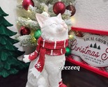 Christmas White Cat Kitty Figure Red Scarf Resin Figurine Tabletop Decor 11.5"