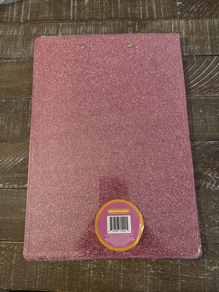 The Cleverworks Pink Glitter Clipboard is a stylish and functional office accessory from the brand Cleverworks. This clipboard features a vibrant pink color with glitter accents, adding a touch of sparkle to your desk while also serving as a practical tool for organizing and storing important documents or notes. Perfect for adding a pop of color to your workspace or as a unique gift for a colleague or friend who loves a bit of glittery flair.