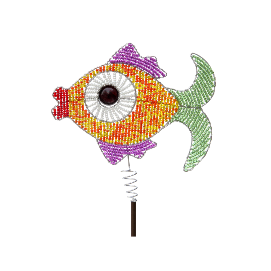 - Colorful Beaded Fish Garden Stake – Handmade Haitian Outdoor Art Decor.