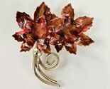 Coro Fall Leaf Brooch, Autumn Hand Painted Leaf Pin, Vintage Enamel Jewelry