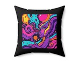 Embrace the cosmic vibes with this psychedelic black spun polyester square pillow featuring a mesmerizing image of a woman of the night. Perfect for adding a touch of mystical charm to your home decor, this pillow is ideal for those who love all things celestial and magical. Great for gifting during birthdays, Christmas, or any occasion where a unique and artistic present is appreciated.