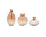 Ombre Crackled Design: Warm brown tones with crackle glass detailing create an eye-catching and textured effect. Modern Bottle Neck Shape: Elegant and sleek design ideal for holding dried florals, pampas stems, or decorative twigs. Set of Three Sizes: Three varied sizes for a dynamic and versatile display, perfect for any tabletop or shelf arrangement. Suitable for indoor use only
