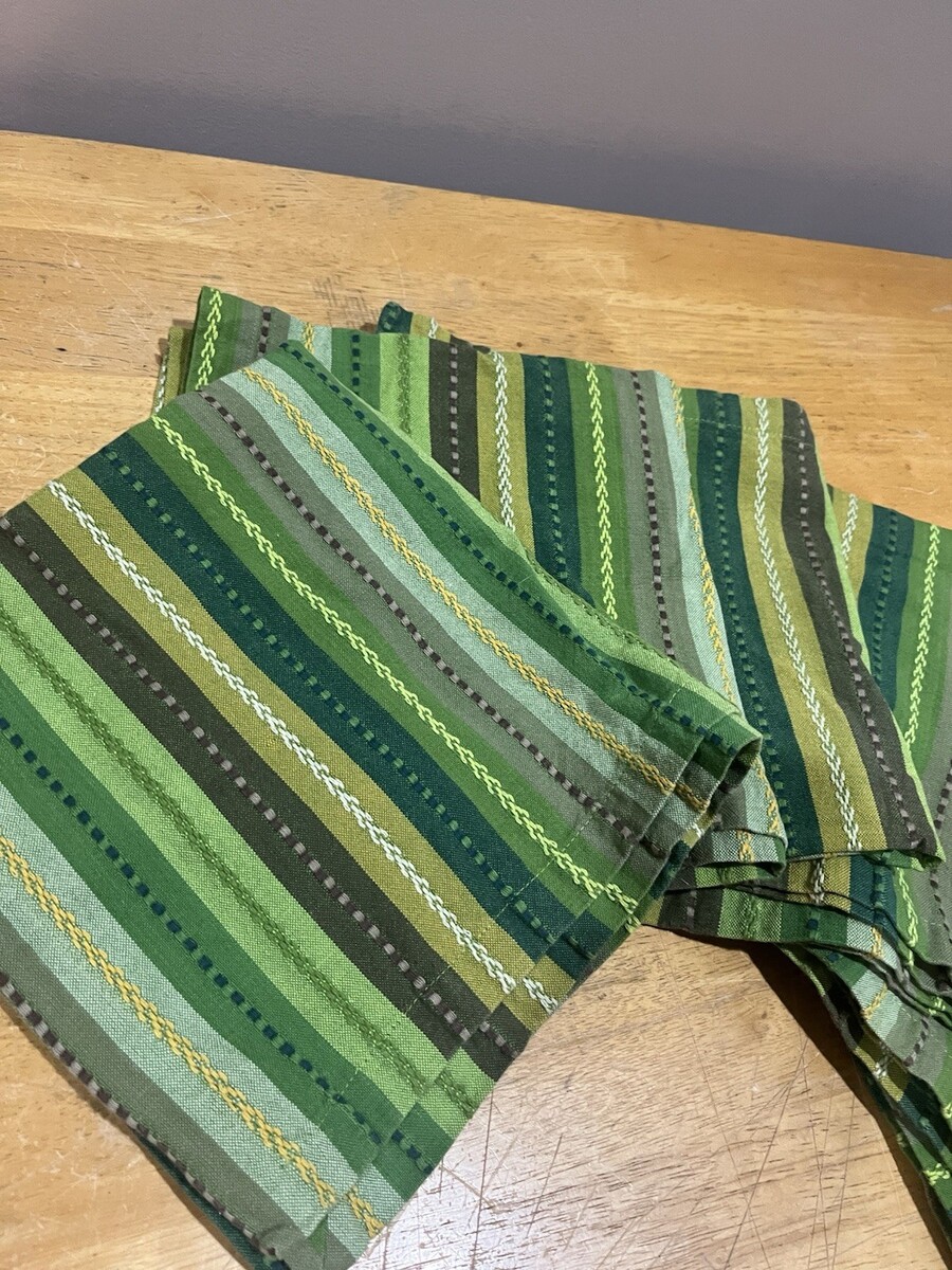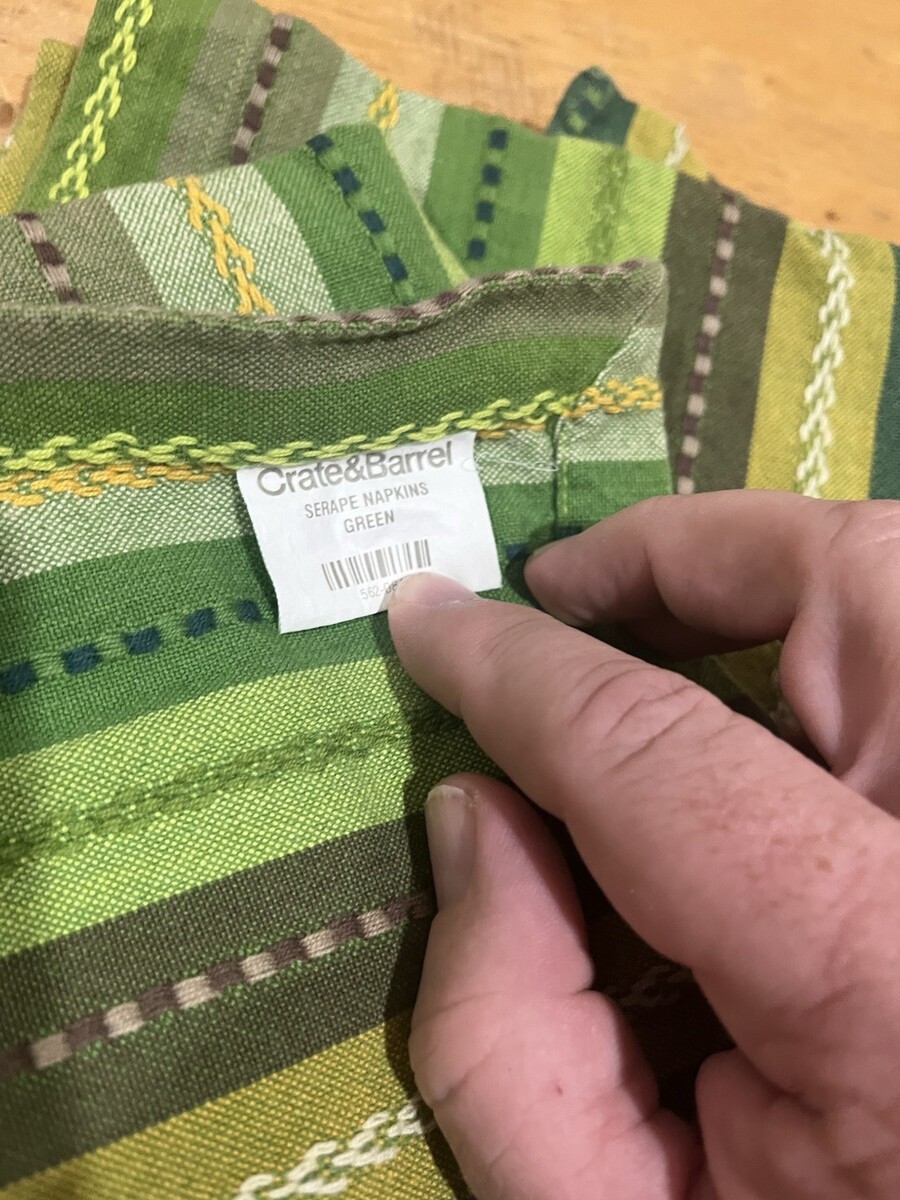- Crate And Barrel 6 Serape Napkins Green Striped Embroidered 21”