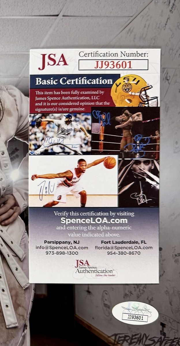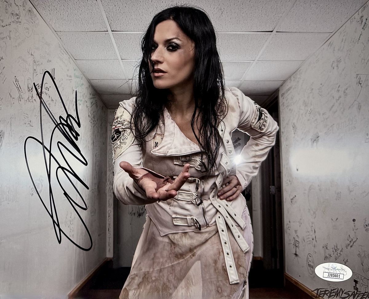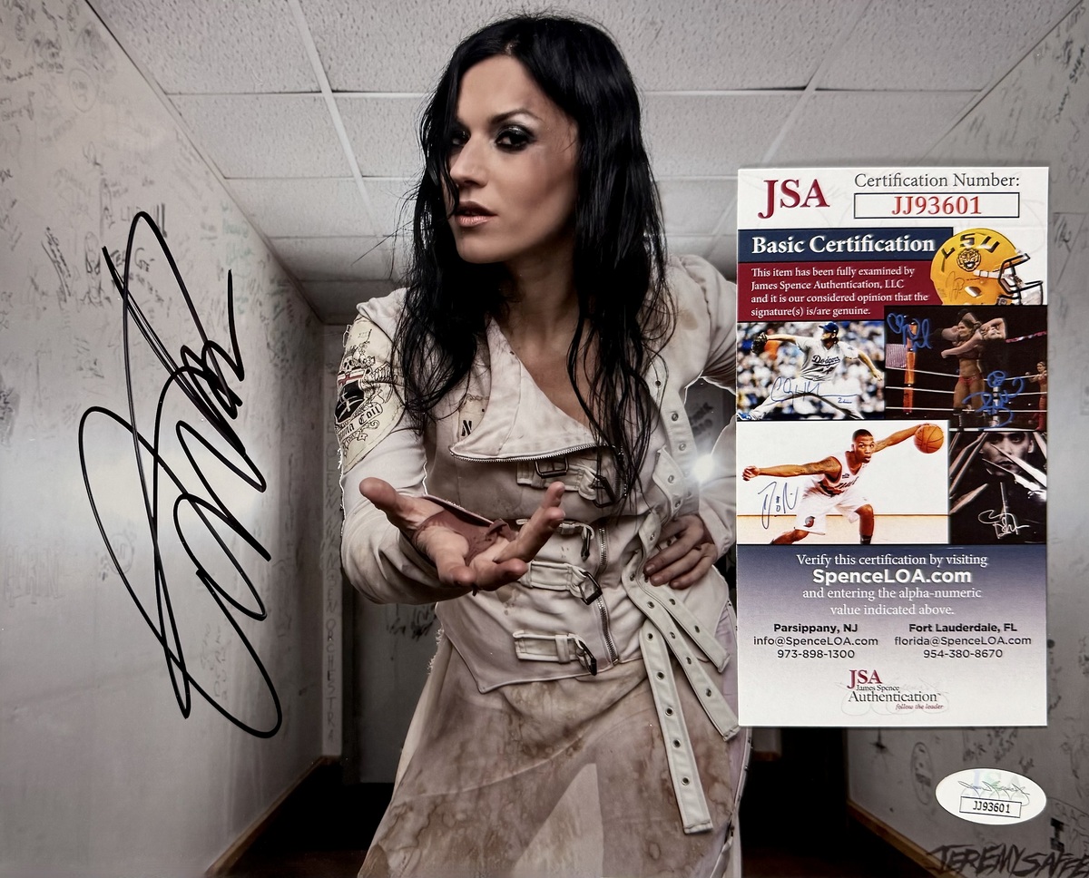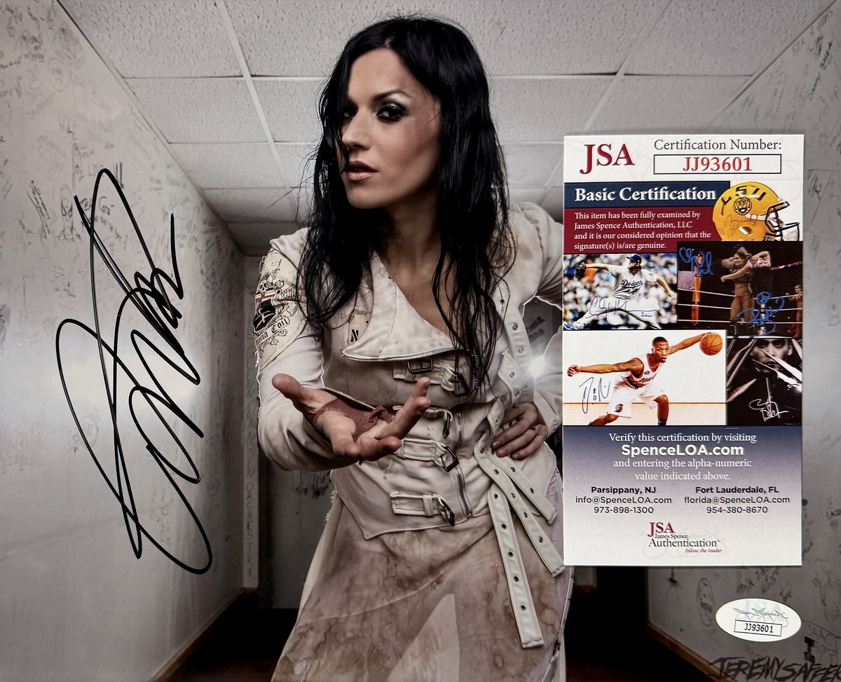 Lacuna Coil Lead singer Cristina Scabbia autographed 8" x 10" photo hand signed in black felt tip marker. This signature has been authenticated by JSA James Spence authentication Certification Number: JJ93601 and will come with the matching cert card you see in the scan. This photo has been credited to Jeremy Saffer a renowned photographer and will come in a clear hard top load for display. Buy with confidence we have been selling in-person autographs since 1992.