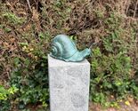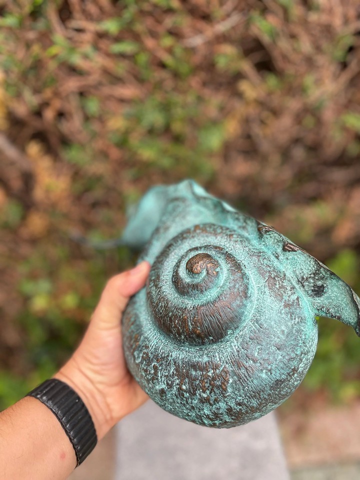 This charming bronze sculpture captures the whimsical elegance of a snail in mid-motion, its feelers gently stretched forward as if exploring the world with curiosity. The shell is masterfully textured in a spiral form, while the body features fluid contours that convey natural movement. With its aged green patina and detailed craftsmanship, this piece brings a sense of gentle wonder and playful charm to gardens, balconies, or nature-inspired indoor spaces.
