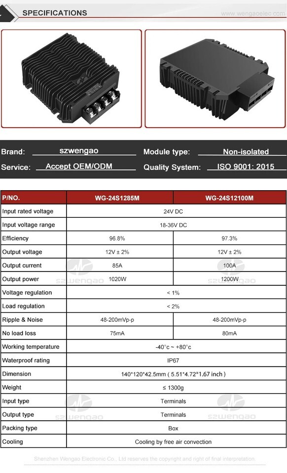 DC 24V to DC 12V 3A 5A 20A 30A 60A 100A Step Down Power Converter Buck Regulator