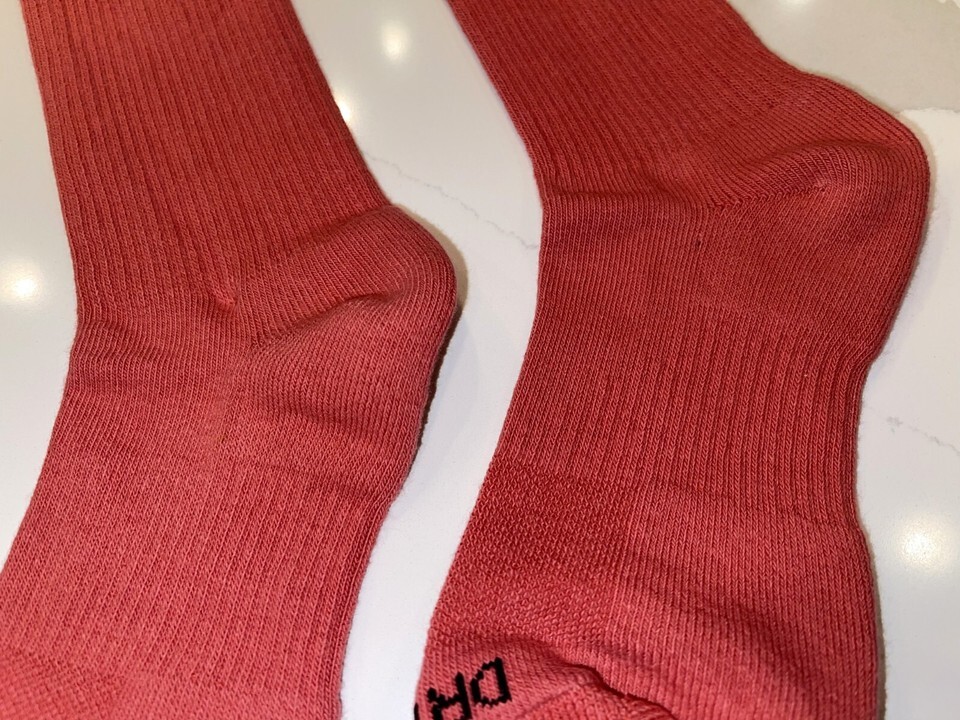 SOCKS ARE A LIGHT RED : I HAVE A RED CAP IN PHOTOS SO YOU CAN SEE THE EXACT RED COLOR.