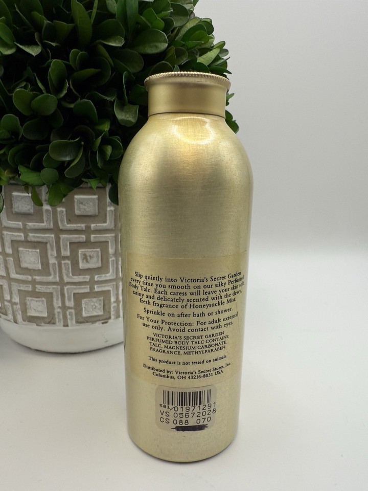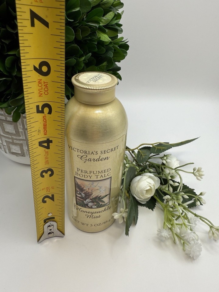 Step back into the golden days of Victoria?s Secret with this discontinued Garden Collection ?Honeysuckle Mist? Perfumed Body Talc ? a rare find for collectors and fragrance lovers alike.